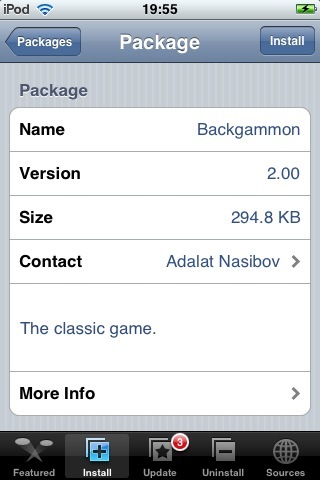 4. Enjoy! You can install loads of programs and games. One useful thing to install is the Ipod Touch Calendar Fix, which will let you add calendar events. Once you click on the Installer Icon, wait a while, and you will get this screen: (You must be connected to the Internet)